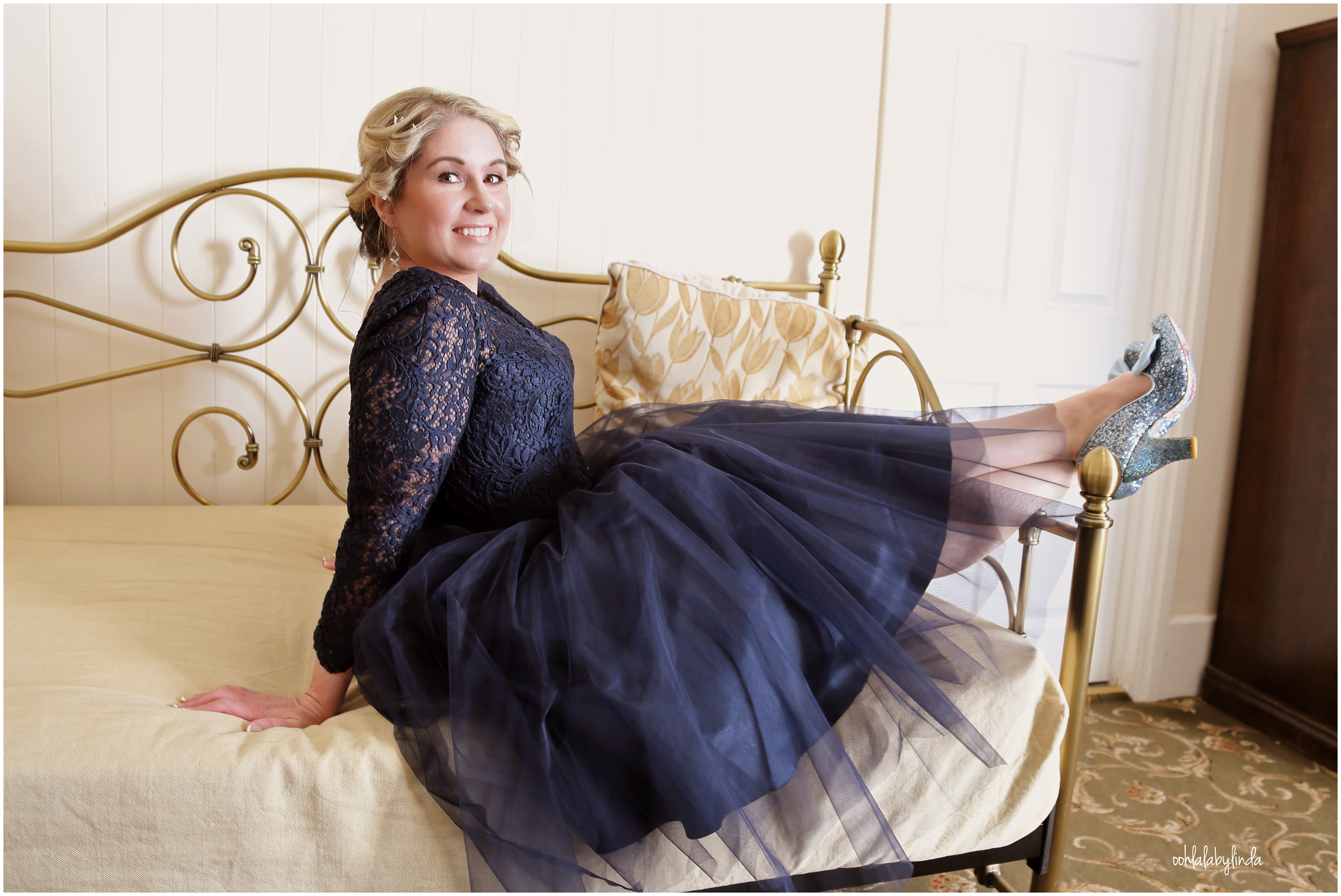 bridesmaid with sparkly shoes taken by Ooh La La Caldicot
